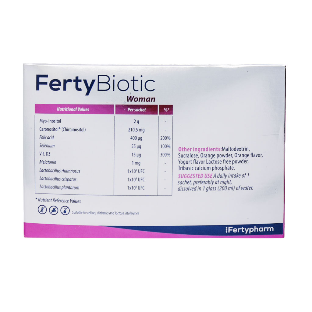 پودر فرتی بیوتیک زنان فرتی فارم یک مکمل غذایی جهت بهبود کیفیت و عملکرد تخمک بانوان است و همراه با اثر مثبت و مفید پروبیوتیکها از روند تولید مثل زنان حمایت میکند. ترکیبات موجود در این محصول از پیشرفت بیماریهای عفونی و کاهش احتمال بروز عوارض بارداری کمک موثری میکند و برای زنان و دختران دچار PCO و افراد تحت درمان IVF مناسب است. فرتی بیوتیک وومن فرتی فارم اولین و تنها مکمل غذایی پروبیوتیک باروری است که هیچ گونه عوارض جانبی را به همراه نخواهد داشت. این مکمل حاوی ماده شیرین کننده مناسب بیماران دیابتی، فاقد گلوتن، فاقد ساکارز و فاقد لاکتوز است. شما برای خرید مکمل تقویت باروری بانوان میتوانید به سایت داروخانه آنلاین آسام دارو مراجعه نمایید.