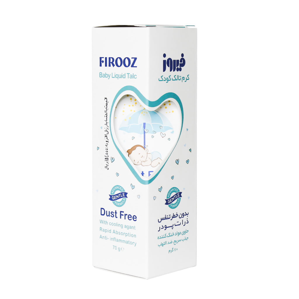 از آنجایی که بعضی از مادران درباره پودرهای بچه نگران کثیفی هستند، امروزه این مشکل حل شده است. اگر به دنبال انتخاب محصولی هستید که در یک زمان هم ثمرات خوب پودر بچه را داشته باشد و هم از پخش شدن ذرات آن در امان باشید، محصول کرم تالک کودک برند فیروز این آسودگی را به شما میدهد که پس از هر بار استفاده مشکلی با کثیف شدن پوست نوزاد به علت پراکنده شدن پودر نداشته باشید.