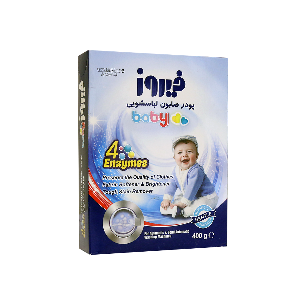 پودر صابون 4 آنزیم فیروز به دلیل خاصیت نرم کنندگی که دارد برای شستشوی لباس های کودکان، لباس های زیر و البسه ظریف بدون نیاز به نرم کننده مناسب می باشد. قدرت شویندگی پودرهای صابون به طور متوسط دو برابر سایر پودرهای شستشو است. کف کنترل شده از ویژگی های این پودر است که با ترکیب شیمیایی خاص خود حساسیتی برای پوست نوزاد ایجاد نمی کند. پودر صابون 4 آنزیم فیروز با دارا بودن 4 آنزیم فعال برای از بین بردن لکه های چربی و دوده، بدون آسیب رساندن به بافت لباس می باشد. مواد شوینده ی مورد نیاز جهت شستشوی لباس نوزاد هم باید به گونه ای باشد که علاوه بر تمیزشدن لباس ها به بافت حساس آن آسیبی نرساند. از همه مهمتر آثار باقیمانده از مواد شوینده روی لباس هم نباید خطری برای نوزاد داشته باشند.