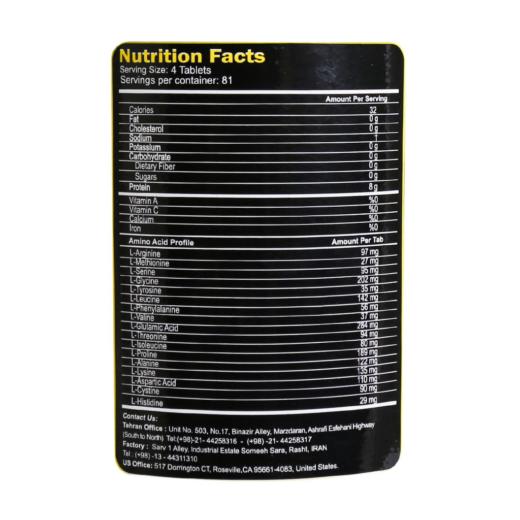 قرص آمینو وی 2000 ژن استار به صورت قرص است که در هر 4 قرص، 32 کالری انرژی دارد و حاوی 8 گرم پروتئین است. مکمل آمینو ژن استار به افزایش حجم عضلات و حفظ قدرت عضلانی در حین ورزشهای سنگین کمک میکند. همچنین این مکمل حاوی 12 نوع ویتامین بوده که سبب افزایش حجم عضلات، رفع خستگی، کمک به حفظ قدرت عضلانی میشود. از دیگر مزیت آن میتوان به قیمت آمینو وی ژن استار اشاره نمود که در برابر اثرگذاری فوقالعاده خود قیمتی به صرفه دارد.