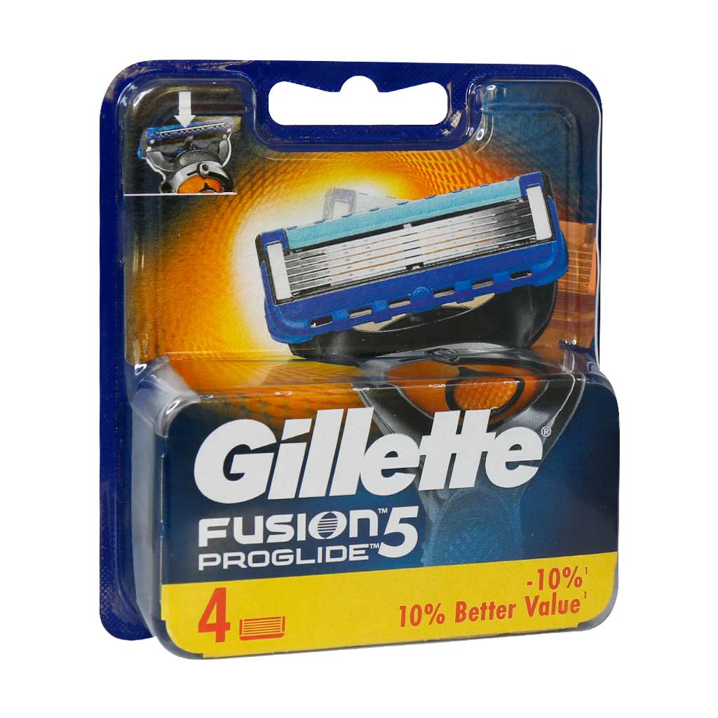تیغ یدک فیوژن ژیلت پروگلاید دارای پنج تیغ نزدیک به هم در قسمت جلوی خودتراش جهت کاهش فشار بر روی پوست در هنگام اصلاح می باشد. این تیغ یدک مخصوص دستگاه ریش تراش ژیلت فیوژن (Gillet Fusion) است. نوار سبز رنگ در قسمت بالای تیغ یدک فیوژن ژیلت حاوی ویتامین E و آلوئه ورا است که از التهاب و حساسیت پوست جلوگیری می کند و نوار آبی رنگ در قسمت پایین آن جهت مراقبت از سطح پوست صورت و جلوگیری از خراشیدگی و بریدگی صورت تعبیه شده اند. این تیغ یدک دارای دو نوار ژلی در قسمت بالایی و پایینی تیغه ها است که در اثر برخورد با آب حالت لیز و سر پیدا کرده و پوست را هم سر می کنند که این امر در سرعت اصلاح و همچنین اصلاحی ایمن و دقیق تاثیر زیادی می گذارد.