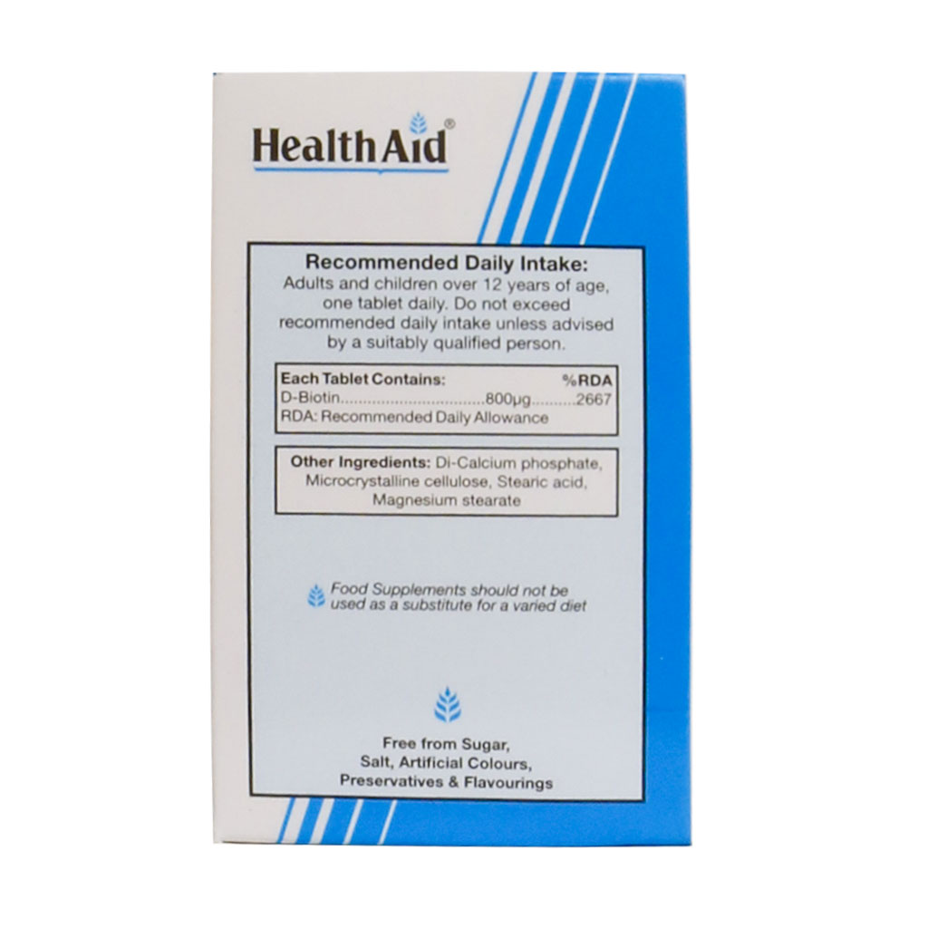 قرص بیوتین 800 میکروگرم هلث اید یک مکمل تغذیهای بوده که افراد بالای 12 سال روزانه میتوانند به منظور کمک به حفظ سلامت پوست، مو و ناخن خود از آن استفاده نمایند. این محصول تحت لیسانس کشور انگلستان است.