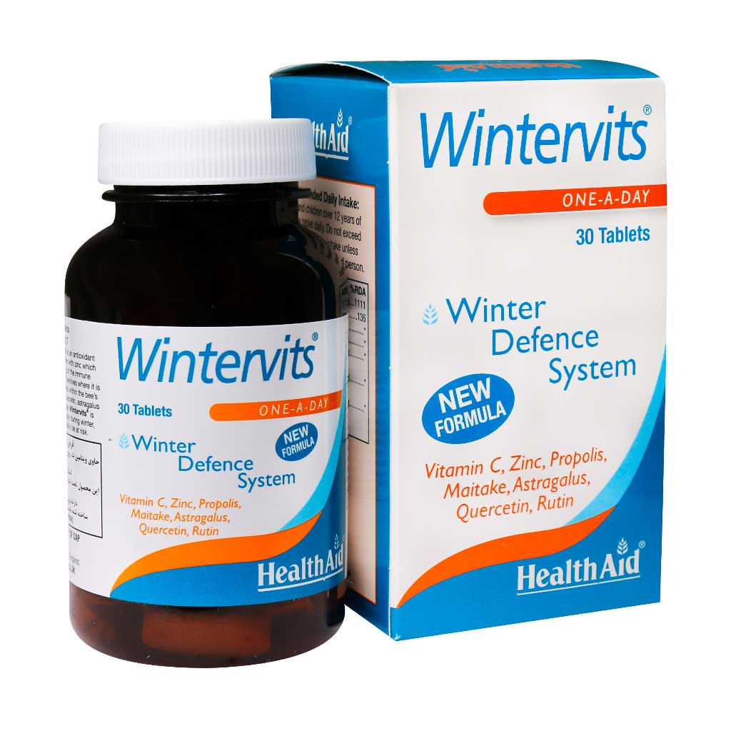 قرص وینترویتس هلث اید حاوی قارچ مرغ چوب، ویتامین C، کوئرستین، روی، بره موم و گون است که برای کمک و حمایت طولانی مدت از بدن در ماه های زمستان، زمانی که سیستم ایمنی بدن ضعیف شده و نیاز به حمایت دارد، مورد استفاده قرار می گیرد. این قرص فاقد هر گونه مخمر، گلوتن، گندم، سویا، لبنیات، شکر، نمک، رنگ مصنوعی، نگهدارنده ها و طعم دهنده ها می باشد.
