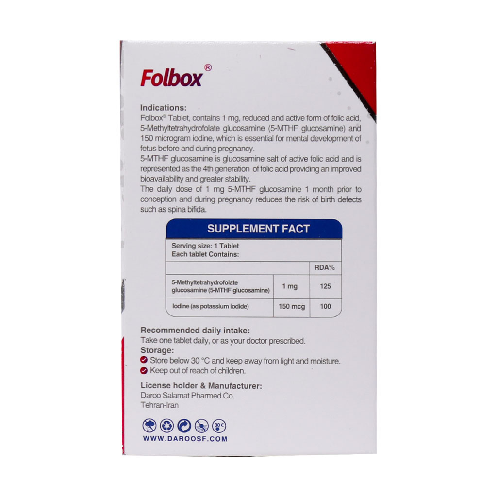 روزانه یک عدد قرص فولباکس های هلث مصرف شود.