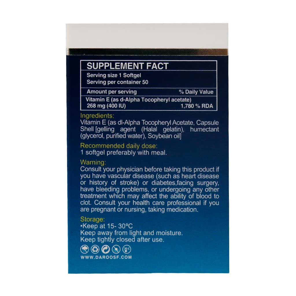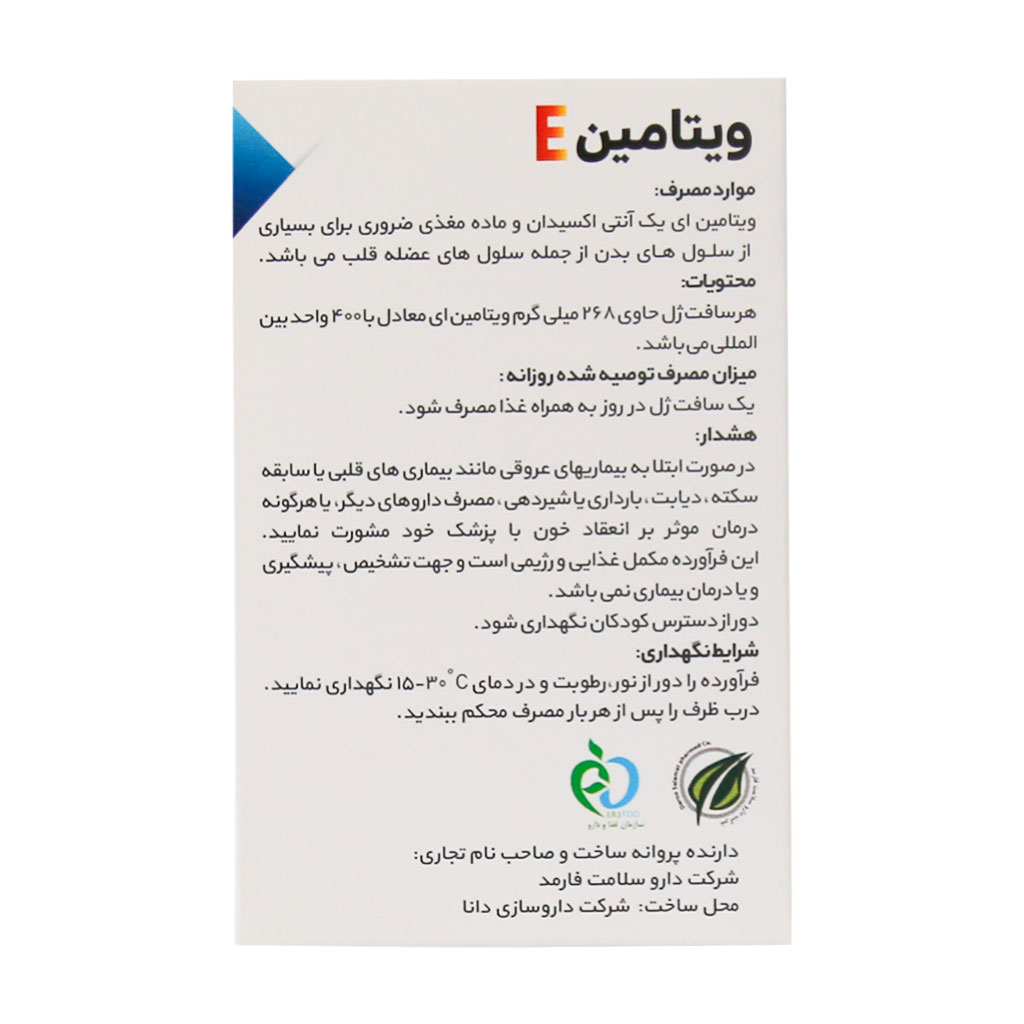 روزانه یک عدد سافت ژل ویتامین ای را همراه با غذا و با مقدار کافی آب، میل نمایید.
