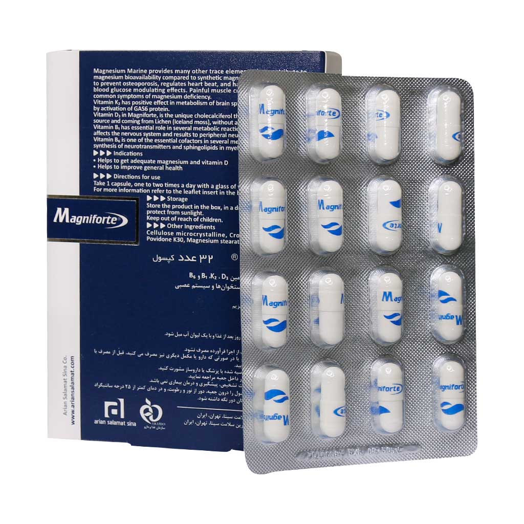 قرص مگنیفورت (magniforte) موجب سلامت و بهبود عملکرد اعصاب و عضلات میشود و با افزایش توده و استحکام استخوانها از دردهای عضلات و مفاصل پیشگیری مینماید. کپسول مگنیفورت هولیستیکا در تنظیم فشار خون، قند خون و تنظیم ضربان قلب نیز موثر است. حملات میگرنی و سردرد را کاهش میدهد و همچنین قرص مگنیفورت موجب کاهش دردهای ناشی از بیماریهای سیستم اعصاب و کاهش یبوست میشود. در نظر داشته باشید طبق توصیه پزشکان مثبت سبز خرید قرص استخوان و مفاصل و استفاده از آن جهت کاهش اسپاسم های عضلانی و حفظ سلامت استخوان و … به شدت توصیه می شود.