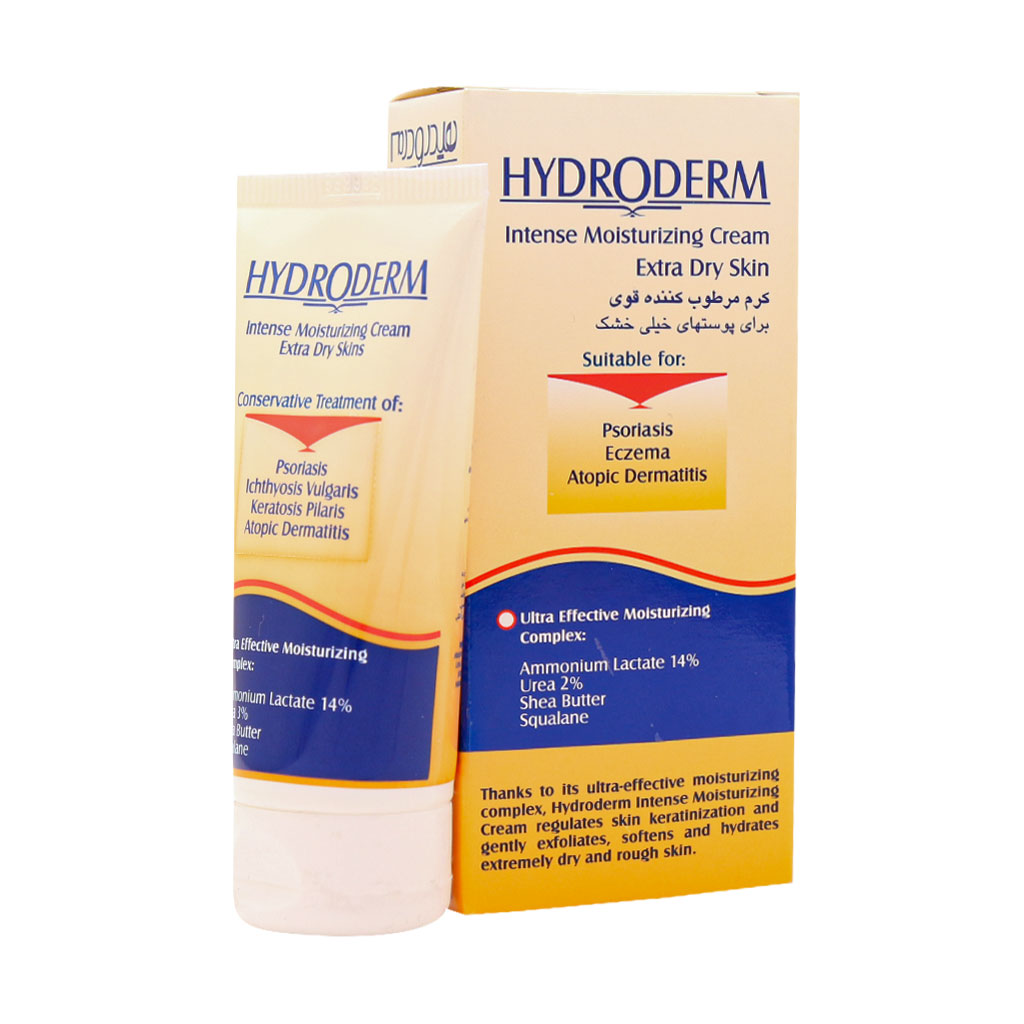 کرم مرطوب کننده قوی هیدرودرم مناسب برای پوست های خشک، با کاهش ضخامت لایه شاخی پوست، بهبود پوسته ریزی طبیعی پوست، جلوگیری از دفع رطوبت پوست و جلوگیری از خارش و التهابات پوستی از ایجاد خشکی شدید و ضخیم شدن لایه شاخی پوست در نواحی مختلف بدن مانند؛ دست، پاشنه پا، زانو، کوتیکول ناخن و آرنج جلوگیری می کند.