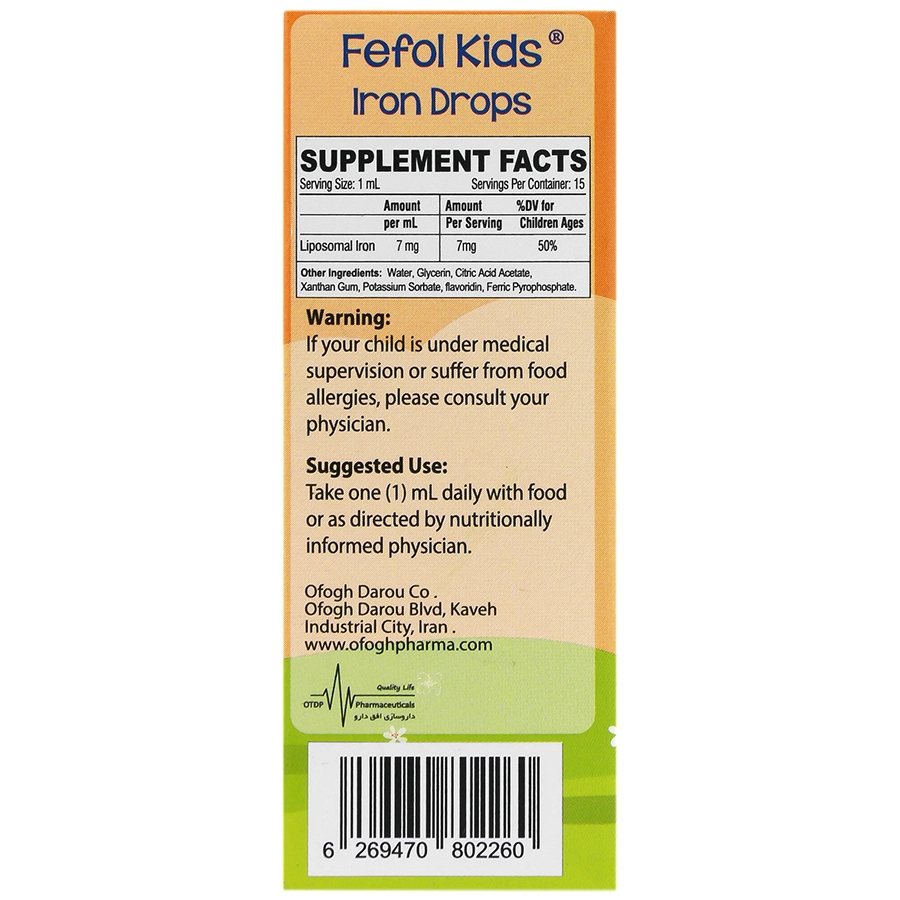 - ففول کیدز، حاوی 7 میلی گرم آهن لیپوزومال به ازای هر میلیلیتر
