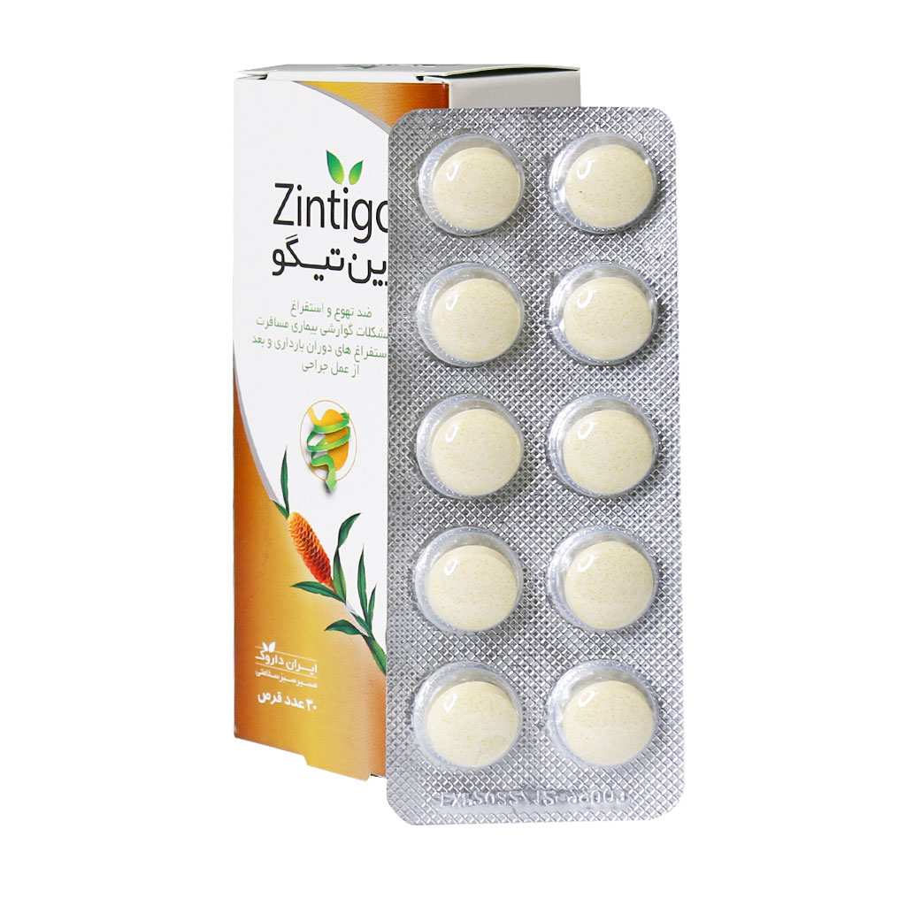 قرص گیاهی زین تیگو ایران داروک حاوی زنجبیل بوده و به درمان استفراغهای دوران بارداری، رفع مشکلات گوارشی ناشی از بیماری مسافرت، بهبود علائم آرتروز و درد مفاصل و تقویت سیستم ایمنی کمک میکند.