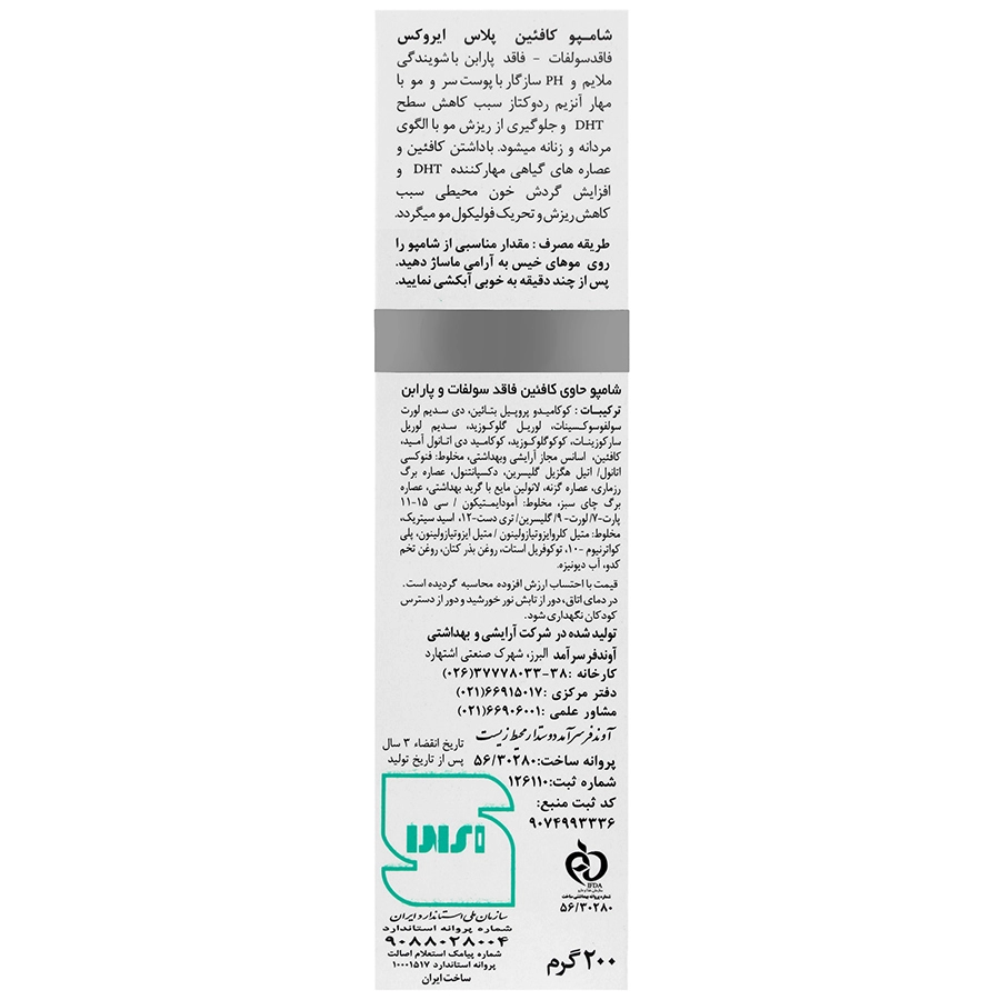 شامپو کافئین پلاس ایروکس مناسب موهای دارای ریزش 200 گرم