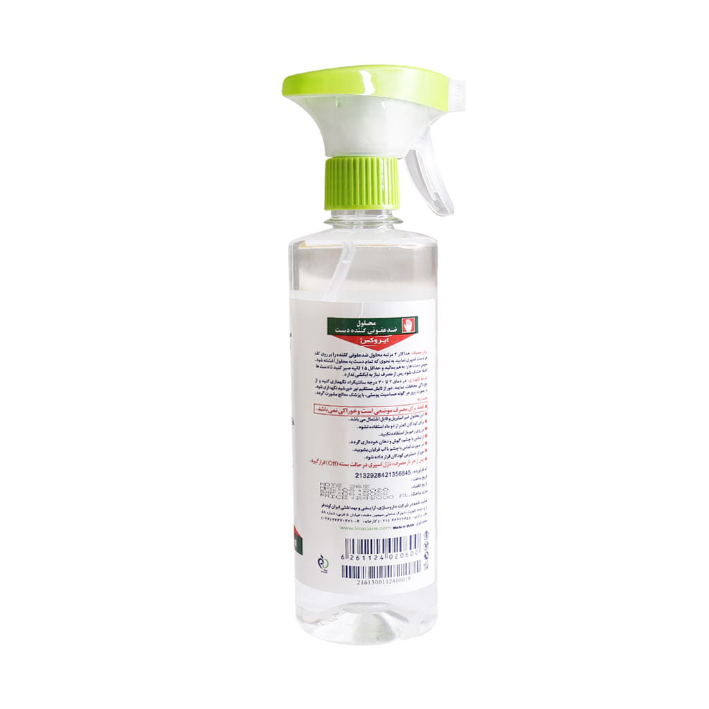محلول ضد عفونی کننده دست آیروکس موجب پاک شدن آلودگی‌ها از سطح پوست شده و دست‌ها را کاملا ضدعفونی می‌کند. این محصول با داشتن ترکیبات مرطوب کننده و نرم کننده از خشک شدن پوست جلوگیری می‌کند.