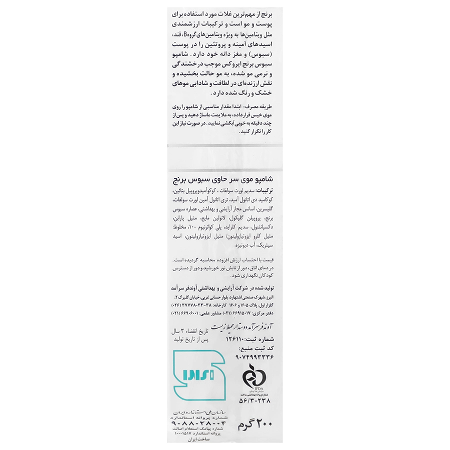 شامپو سبوس برنج ایروکس مناسب موهای خشک و رنگ شده ۲۰۰ گرم