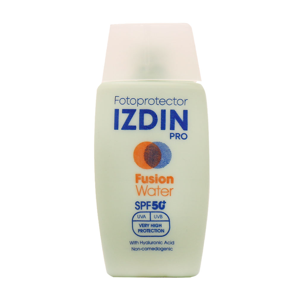 ضد آفتاب فیوژن فلوئید SPF50 ایزدین مخصوصا برای پوست های چروک و آسیب‌دیده توسط خورشید توصیه می‌شود و ضد آب نیز است. پس از استفاده از این محصول اثری مات و تا حدود زیادی نامرئی روی پوست باقی می‌ماند که خشک نخواهد شد. این محصول حاوی ترکیبات ضد پیری نظیر ویتامین E و اسید هیالورونیک است. همچنین فرمی مات کننده و بسیار سبک دارد که بسیار سریع جذب پوست می‌شود و استفاده از آن را بسیار راحت می‌سازد.