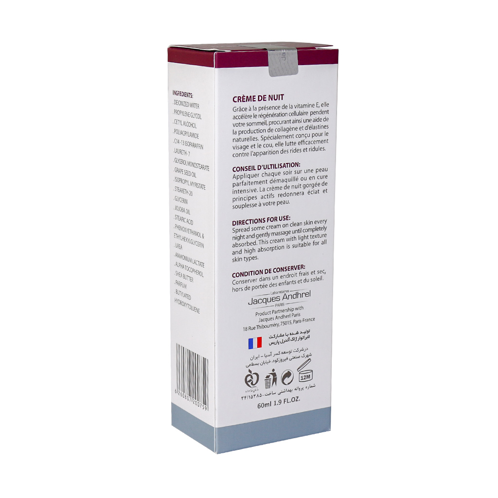 کرم شب ژاک آندرل پاریس ساخت کشور فرانسه بوده و از پیری زودرس و ایجاد چین و چروک روی پوست جلوگیری میکند. این کرم تغذیه کننده مناسب پوست در طول شب است.