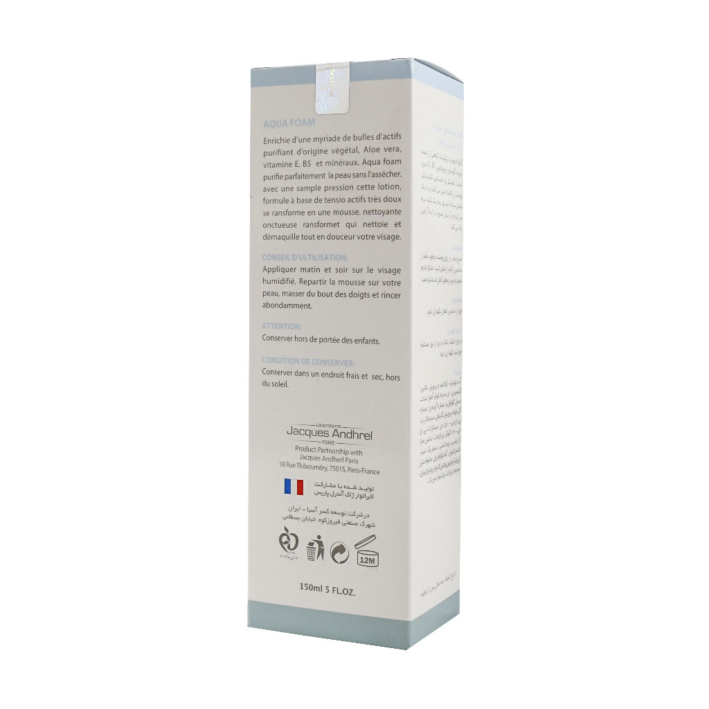 فوم پاک کننده صورت مناسب پوست خشک ژاک آندرل پاریس مدل آکوا فوم 150 میلی لیتر