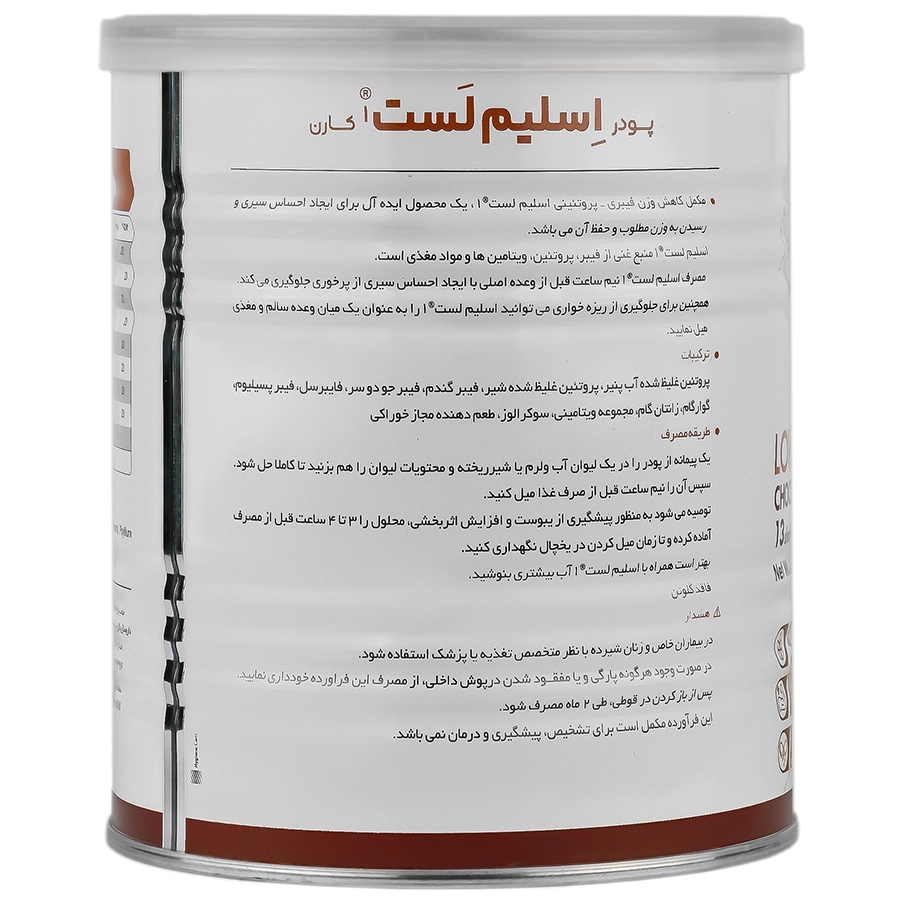 پودر اسلیم لست 1 کارن مکمل غذایی کاهش وزن فیبری – پروتئینی ‌است و یک محصول ایده آل برای کاهش اشتها و حفظ وزن مطلوب بدن است.