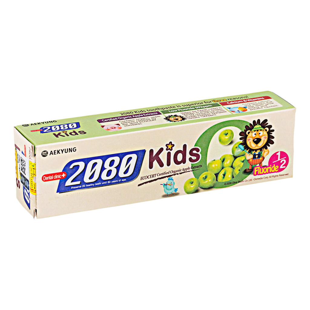 خمیر دندان ارگانیک کودک 2080 گیاهی و فاقد عناصر شیمیایی بوده و فلوراید به کار رفته در آن کنترل شده است. این خمیر دندان با ترکیبات خود، کلسیم لازم برای دندان کودک را فراهم ساخته و از سست شدن لثه جلوگیری میکند. طعم سیب طبیعی این محصول کودک را به مسواک زدن علاقهمند میکند.