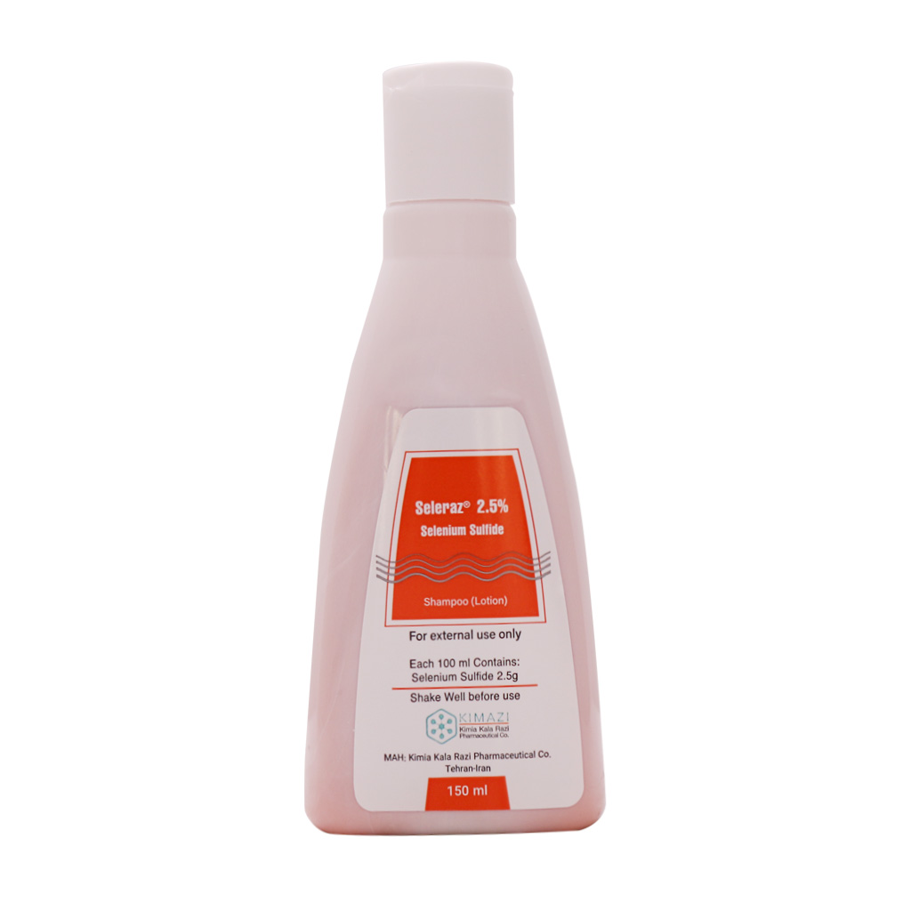شامپو سلنیوم سولفاید 2.5 درصد کیمیا کالای رازی یک شامپو دارویی دارای خواص ضد قارچ بوده و در درمان شوره سر، درماتیت سبورهای و تینه آ ورسیکالر کاربرد دارد. ترکیبات ضد شوره و ضد قارچ موجود در شامپو ضد شوره باعث ضدعفونی نمودن پوست شده و از رشد باکتریها و قارچهای مولد شوره سر جلوگیری مینماید. علاوه بر آن شامپو سلراز 2.5 درصد کیمیا کالای رازی در کنترل خارش و پوسته پوسته شدن پوست سر نقش دارد و التهاب و قرمزی پوست سر را کنترل مینماید.