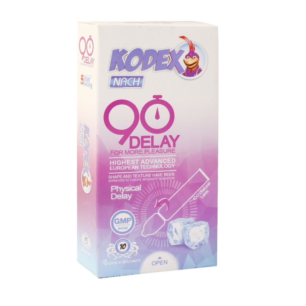 کاندوم تاخیری 90 دقیقه دیلی کدکس محصولی کاملا جدید و اختصاصی از برند کدکس است. رینگ ویژه موجود در این کاندوم با روش اسکوئیزینگ موجب تاخیر در انزال میشود. روش اسکوئیزینگ در تحقیقات برای تاخیر استفاده می شود و فاقد هر گونه عارضه جانبی است. همچنین بنزوکائین موجود در لایه داخلی این کاندوم به تاخیر کمک میکند.