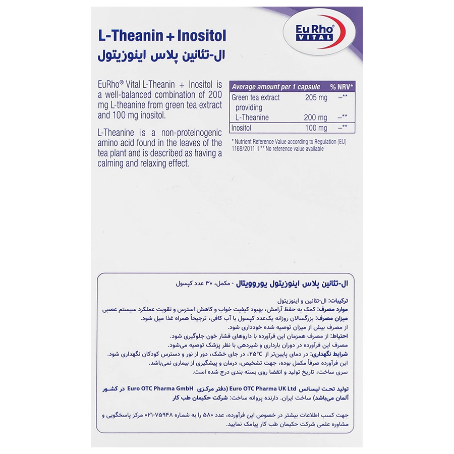 کپسول ال-تئانین پلاس اینوزیتول یوروویتال 30 عددی