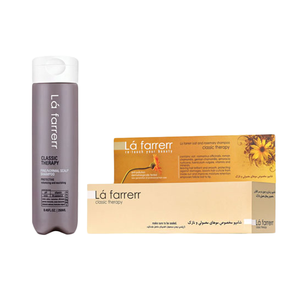 خاصیت براق کنندگی و خوش حالت کردن این محصول در سطح مناسبی قرار دارد و pH آن با ساختار موهای معمولی و نازک متناسب است. ویتامین های محلول در آب موجود در این محصول باعث افزایش متابولیسم سلولی شده و به تقویت و بازسازی ریشه ی مو کمک می کنند. همچنین از موها در برابر رادیکال های آزاد و عوامل محیطی مخربی مثل نور خورشید محافظت می کند. شامپو موی معمولی لافارر همان طور که از نامش پیداست حاوی دو مولفه ی اصلی جوی دو سر و رزماری است. جوی دو سر روی تارهای مو یک لایه ی پروتئینی محافظ ایجاد می کند و ترمیم و بازسازی ساقه ی مو را بر عهده دارد. همچنین رزماری نیز عامل افزایش خون در سطح پوست به شمار می رود و به تغذیه ی ریشه ی مو کمک می کند. رزماری دارای آنتی اکسیدان های طبیعی نیز هست که آرامش دهنده پوست سر می باشند.