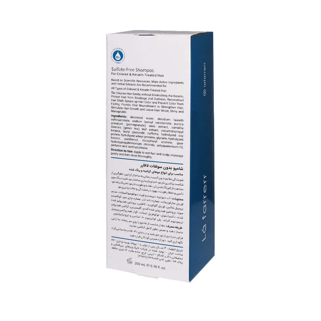 شامپو بدون سولفات لافارر مناسب مو کراتینه و رنگ شده 200 میلی لیتر