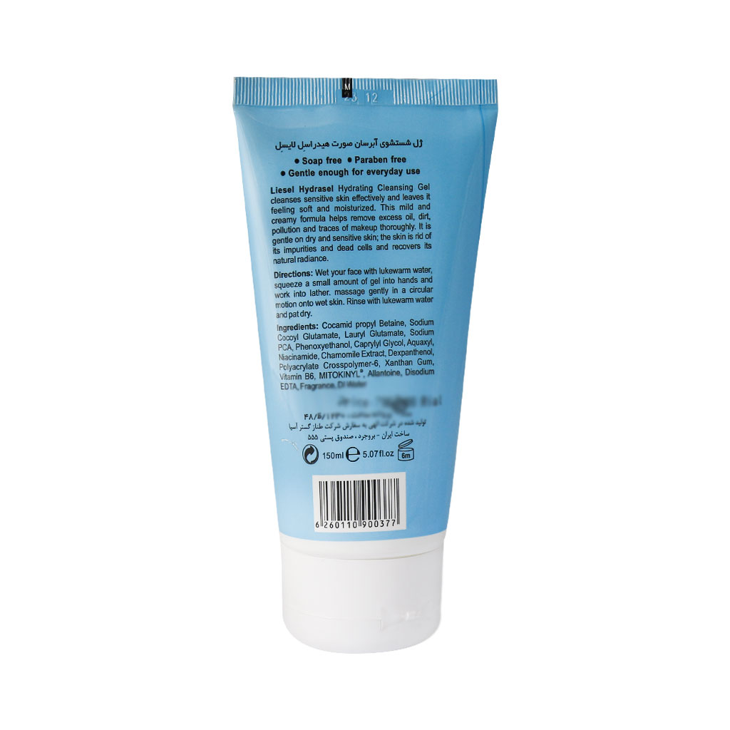 ژل شست و شوی آبرسان صورت هیدراسل لایسل فاقد صابون و پارابن بوده و آثار آلودگی، چربی اضافه و انواع آرایش را پاک میکند. این ژل حاوی ویتامین B3، B5 و B6 است.