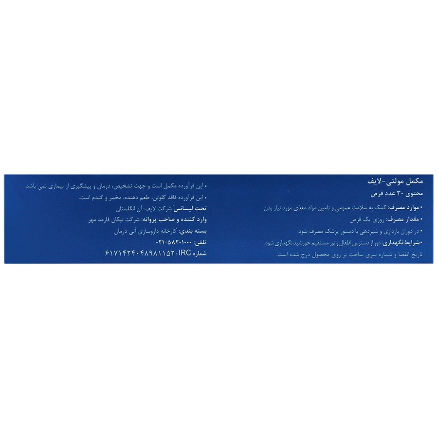 جدول ترکیبات قرص مولتی لایف لایف آن