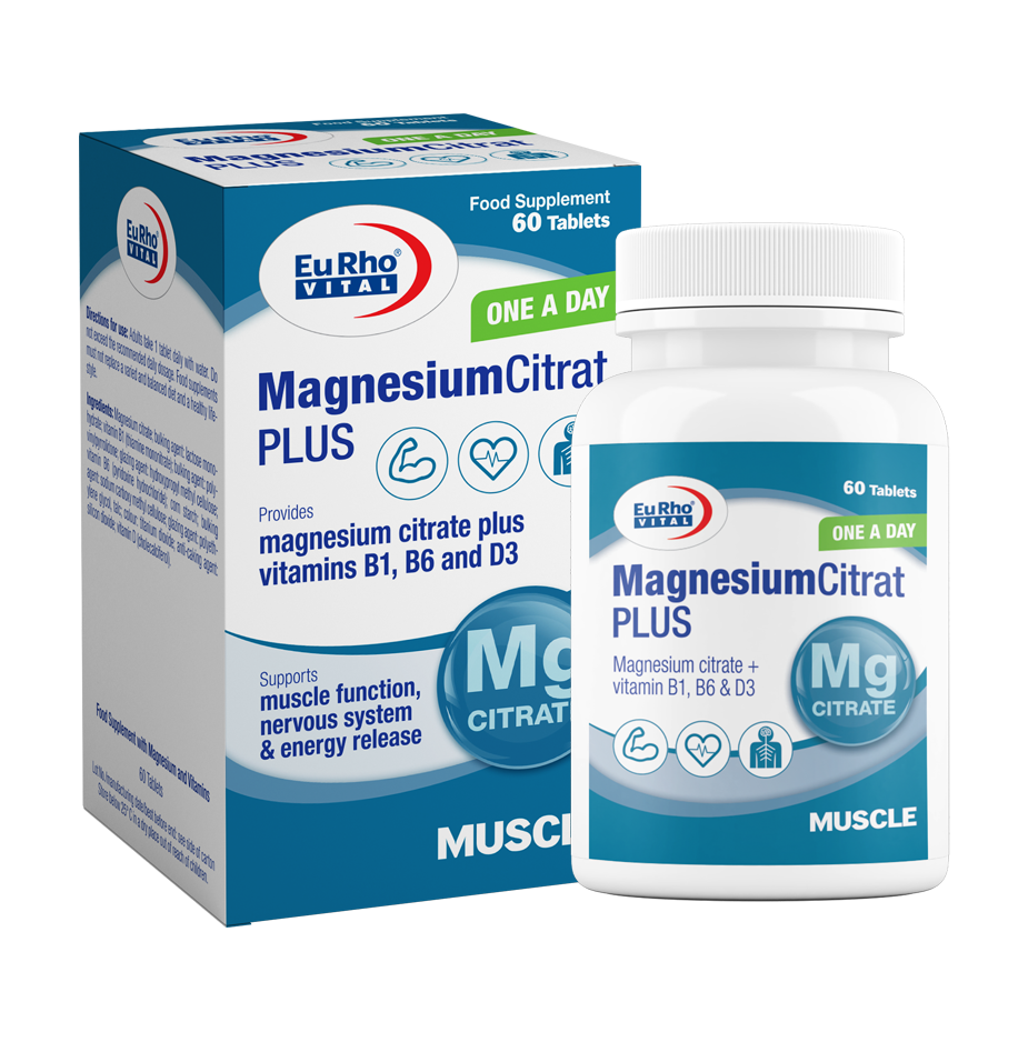 منیزیم سیترات یکی از بهترین املاح منیزیم است که از اتصال به سیتریک اسید ایجاد میشود. این فرم از منیزیم حلالیت و زیست دسترسی بالایی دارد، برای جذب نیازمند اسید معده نیست و بهآسانی از دستگاه گوارش جذب میشود. همچنین مصرف طولانی مدت منیزیم سیترات در دوزهای توصیه شده، باعث تجمع این عنصر در بدن نمیشود که این مورد بهویژه در افرادی که نیاز به مصرف مداوم منیزیم دارند حائز اهمیت است. تحقیقات جدید نشان میدهد که منیزیم سیترات علاوه بر جبران کمبود منیزیم، اثربخشی بالایی در بهبود گرفتگی عضلات و سردردهای میگرنی دارد. قرص منیزیم سیترات پلاس یوروویتال حاوی منیزیم به فرم سیترات و ویتامینهای B1، B6 و D3 است.