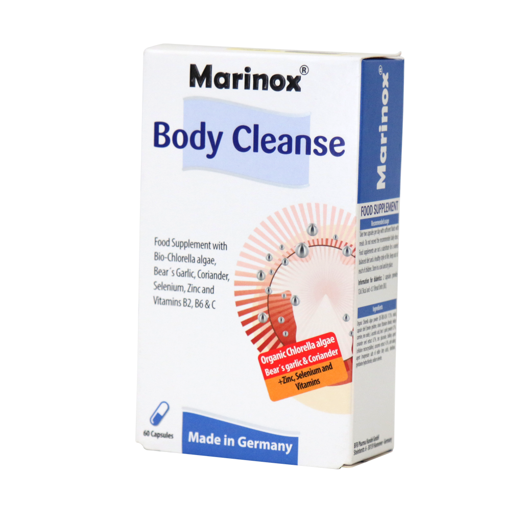 کپسول بادی کلینز مارینوکس حاوی جلبک کلرلا، پودر سیر، عصاره دانه گشنیز، عصاره زردچوبه، عناصر روی، سلنیوم و ویتامین‌های C، B2 و B6 است. در دنیای مدرن امروز و زندگی شهری با گسترش روزافزون آلودگی‌های محیطی مانند آلودگی هوا، آلودگی منابع آب و خاک، آلودگی مواد غذایی و انواع سموم کشاورزی و آفت کش‌ها، تغییر رژیم‌های غذایی و همچنین بروز انواع استرس‌ها، تغییر در میزان فعالیت بدنی افراد و بروز اختلال در تعادل مصرف مواد غذایی تاثیرات مخرب و متعددی روی بدن انسان ایجاد شده است. این تغییرات شامل ابتلا به انواع سرطان‌ها، بیماری‌های قلبی عروقی، ریوی و سایر بیماری‌های مزمن می‌شود. استفاده از برخی منابع غذایی و ویتامین‌ها می‌تواند در کاهش عوارض ناشی از عوامل ذکر موثر واقع شود. از این رو مصرف کپسول مارینوکس می‌تواند در حل این سری بیماری‌ها مفید باشد.