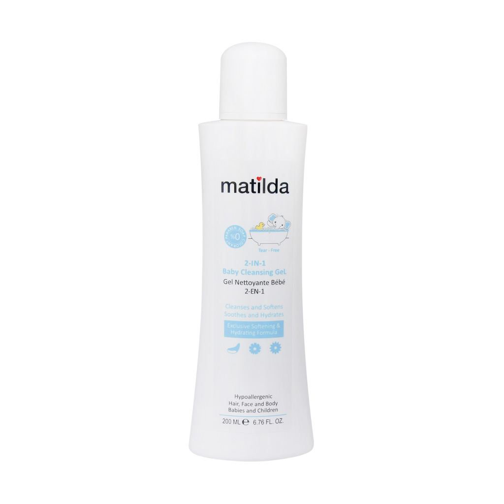 ژل شستشوی کودک 2 در 1 ماتیلدا به عنوان یک پاک کننده ملایم برای مو، صورت و بدن کودک، نرم کننده و مغذی پوست و مو بوده که فاقد ایجاد احساس سوزش در چشم است. از این محصول برای کودکان تازه متولد شده هم میتوان استفاده کرد.