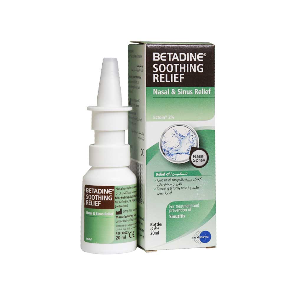 اسپری بینی ضد احتقان برای کمک به درمان آلرژیهای بینی و سینوزیت کاربرد دارد. اسپری بینی بتادین یک محلول هایپرتونیک است و با داشتن اکتوئین دو درصد برای نفوذ به سینوسها مناسب است. همچنین اسپری بینی بتادین برای ترشحات بیش از حد و ترشحات خشک شده بینی نیز مناسب است.