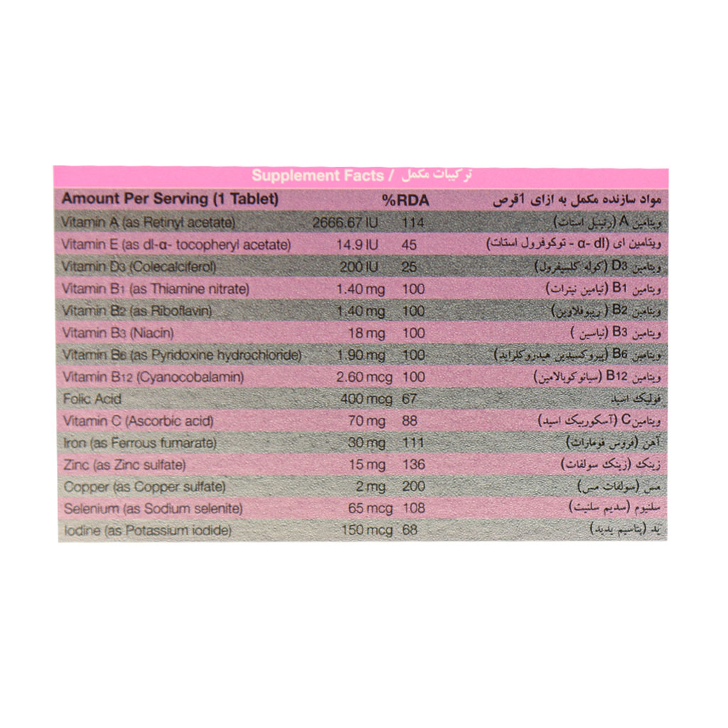 | ویتامین B6 (پیروکسیدین هیدروکلراید) | 1.90mg | 100 |