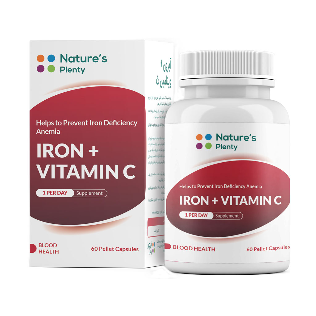 کپسول آهن با ویتامین C نیچرز پلنتی آهن مورد نیاز بدن را تامین کرده و با جذب بالا، به سرعت مشکلات کم خونی را برطرف میکند. ویتامین سی موجود در این محصول به جذب آهن کمک میکند.