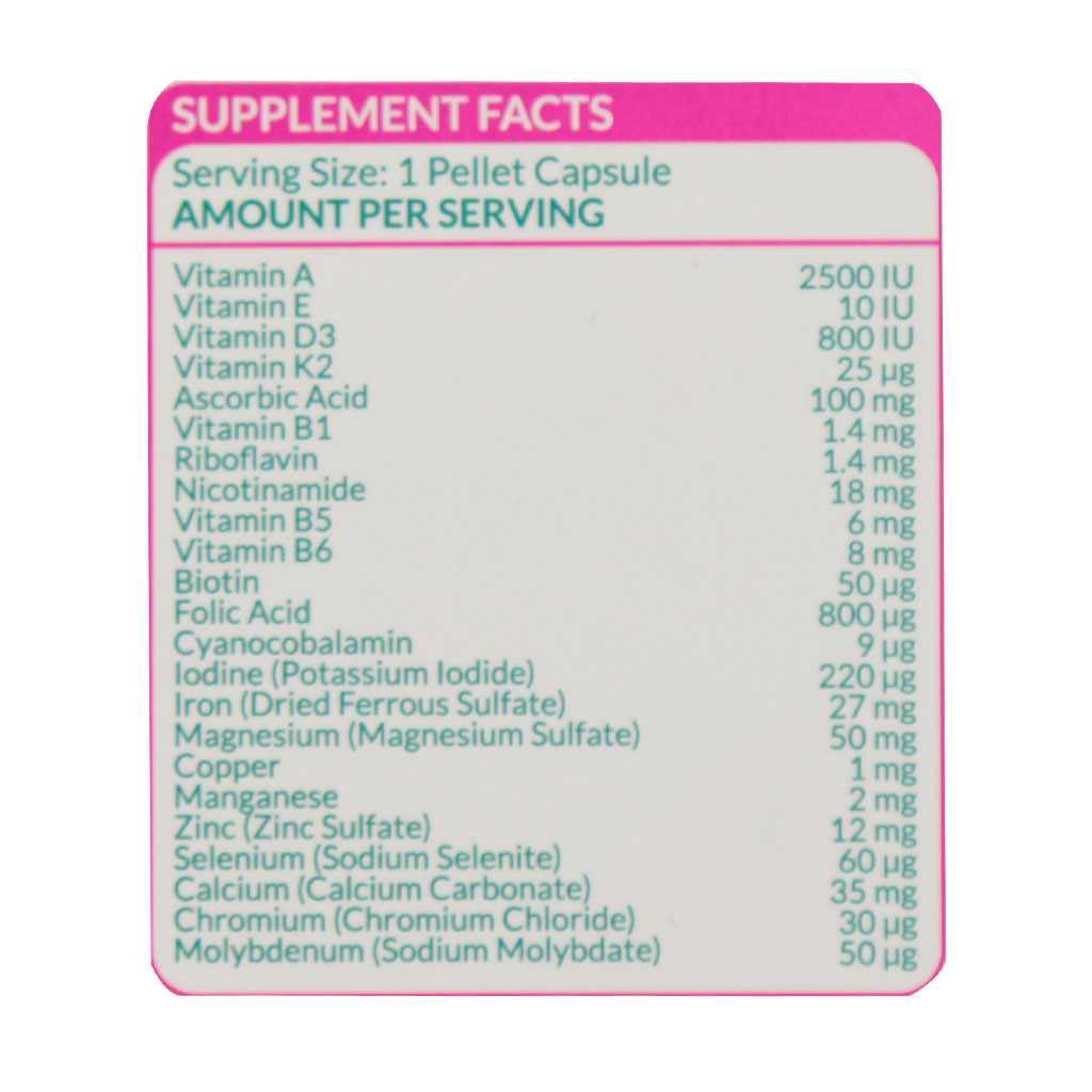 جدول ترکیبات کپسول مولتی ویتامین و مینرال بارداری و شیردهی نیچرز پلنتی