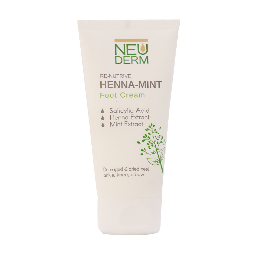 کرم ترک پا رینوتریو حنا و نعنا نئودرم به جز اینکه برطرف کننده خشکی و ترک پاشنه پا باشد، برای قوزک پا، زانو و آرنج نیز قابل استفاده است. این محصول با داشتن اسید سالیسیلیک و عصارههای گیاهی همچون حنا و نعنا نرمی و لطافت را به پوست آسیب دیده باز میگرداند.