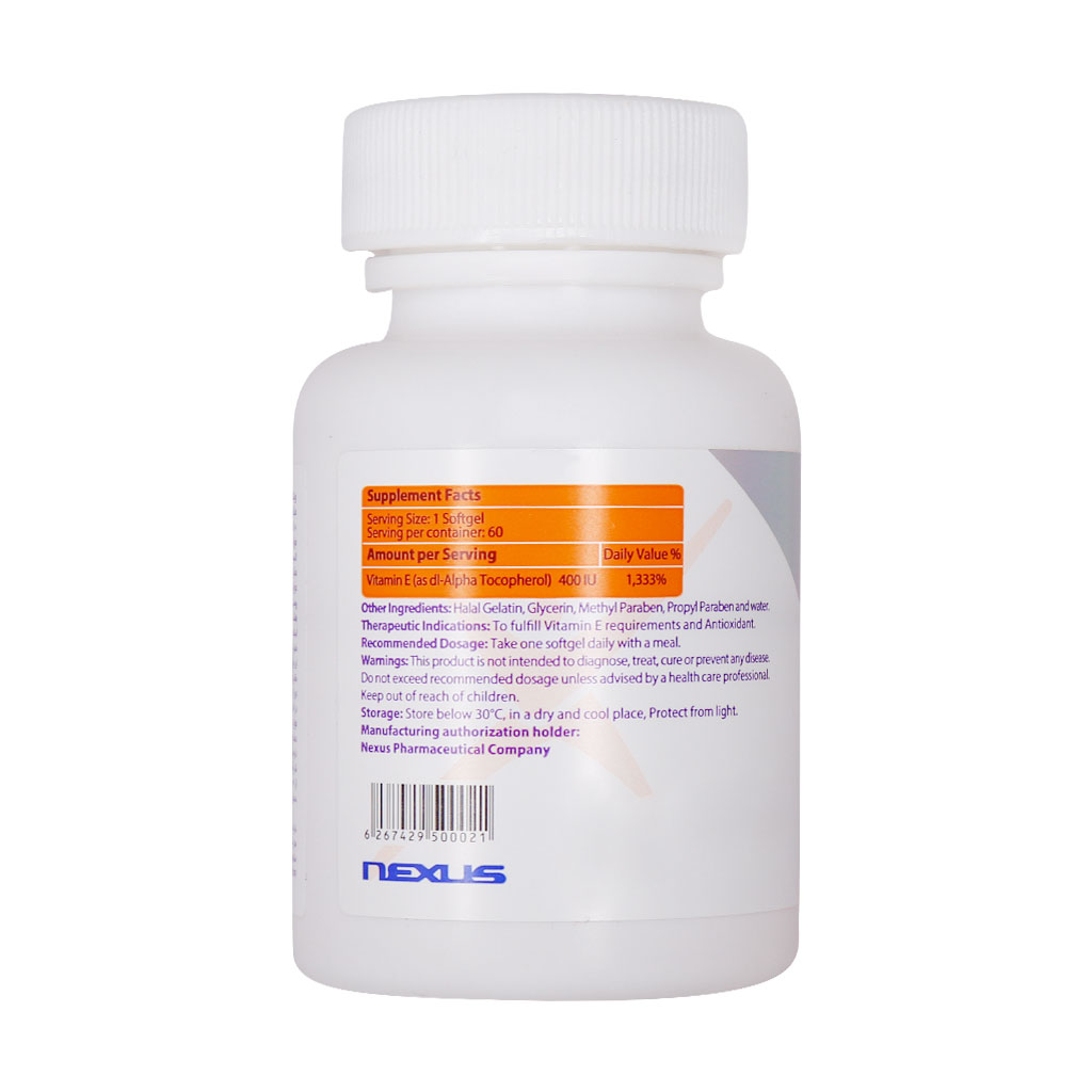 سافت ژل ویتامین E 400 واحد نکستایل وظیفه تامین ویتامین ای مورد نیاز بدن انسان را دارد. این محصول خاصیت آنتی اکسیدانی داشته و اثرات مخرب رادیکالهای آزاد را از بین میبرد.