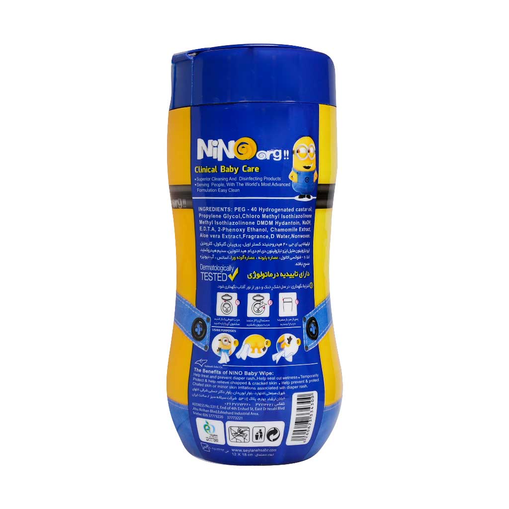 دستمال مرطوب پاک کننده کودک استوانه ای نینو 40 عدد