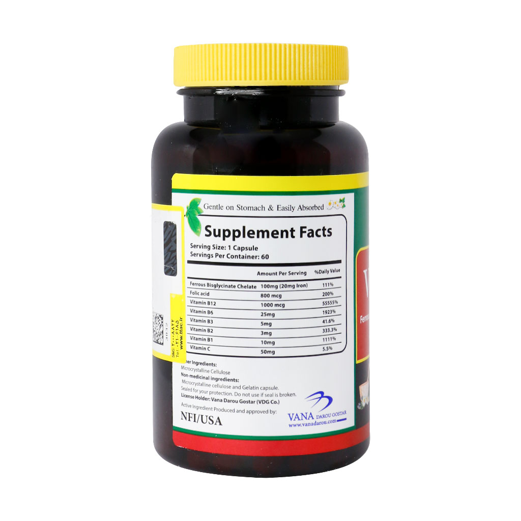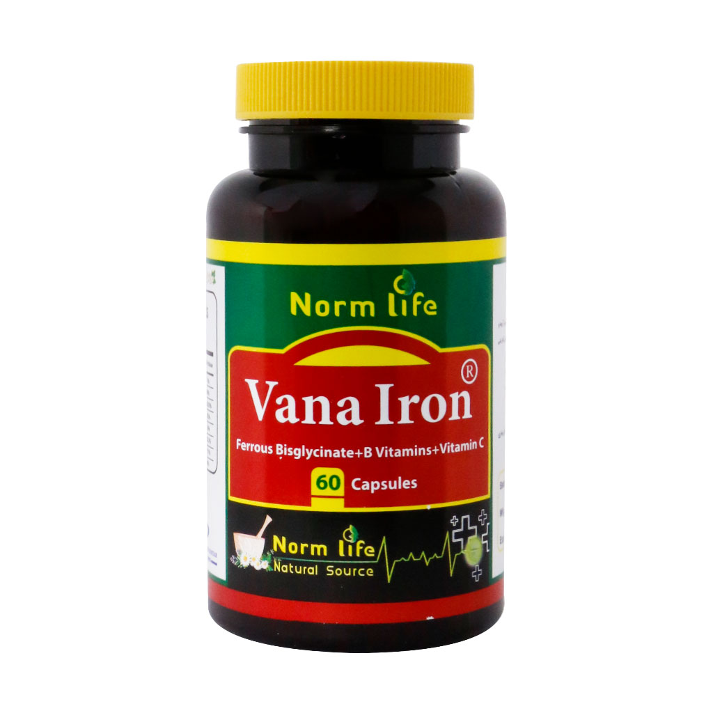کپسول وانا آیرون نورم لایف حاوی مقدار بالای آهن جهت جبران کمبود آهن جهت رفع خستگی و بی حالی ناشی از کم خونی فقر آهن است.