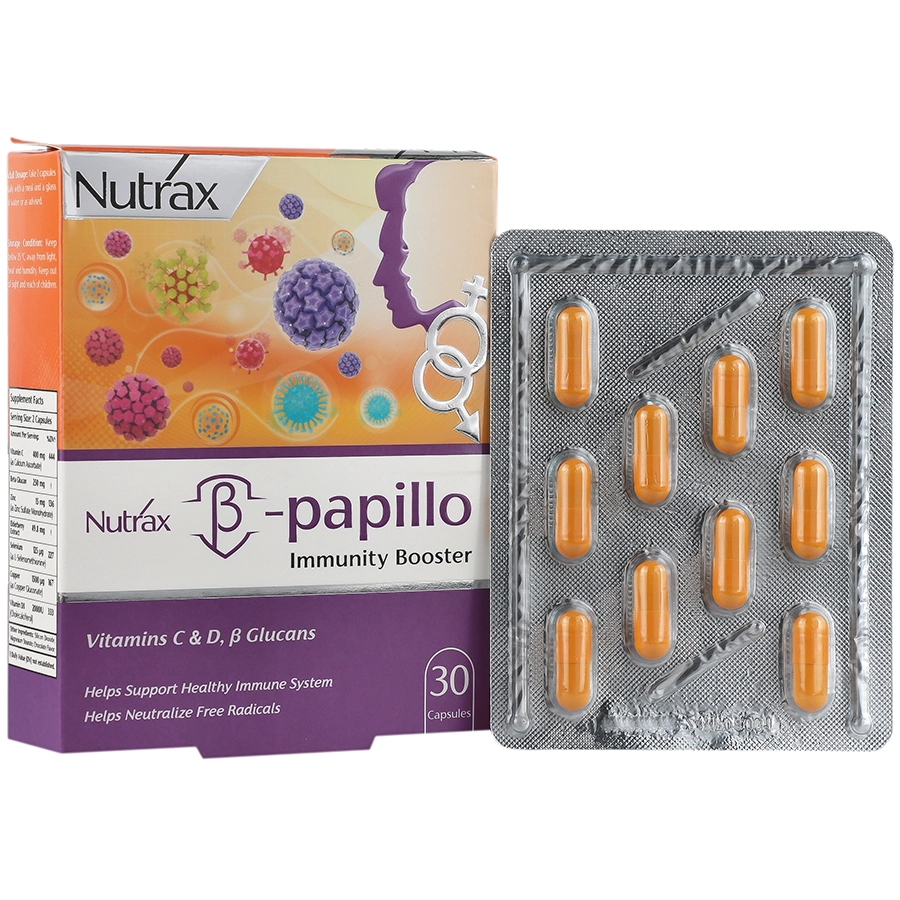 کپسول بتا پاپیلو نوتراکس با دارا بودن انواع ویتامین‌ها و مواد معدنی تقویت کننده و محافظت کننده سیستم ایمنی بدن است. این فراورده به بهبود عملکرد سیستم دفاعی بدن در مواجهه با انواع ویروس‌ها از قبیل ویروس سرماخوردگی، آنفلوانزا، پاپیلومای انسانی و … کمک شایانی می‌نماید. همچنین به کاهش شدت و مدت زمان علائم سرماخوردگی و آنفلولانزا به ویژه در فصول پاییز و زمستان کمک می‌کند. شما می‌توانید با خرید مکمل درمان زگیل تناسلی و استفاده از آن به واسطه ترکیبات موثر همچون مکملی به نام بتا پاپیلو به درمان ضایعات پوستی و زگیل تناسلی کمک نموده و از ابتلا به سویه‌های مختلف ویروس HPV نیز پیشگیری نمایید.