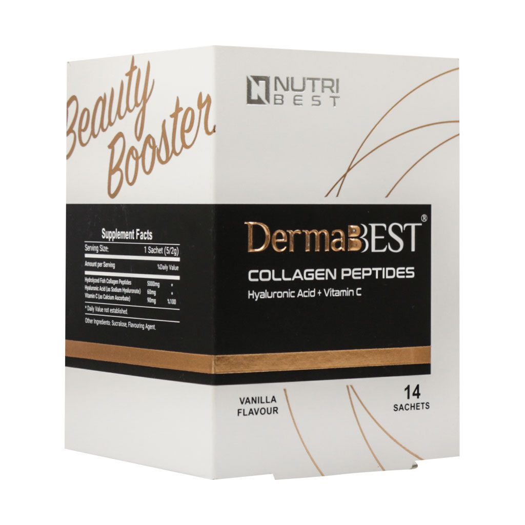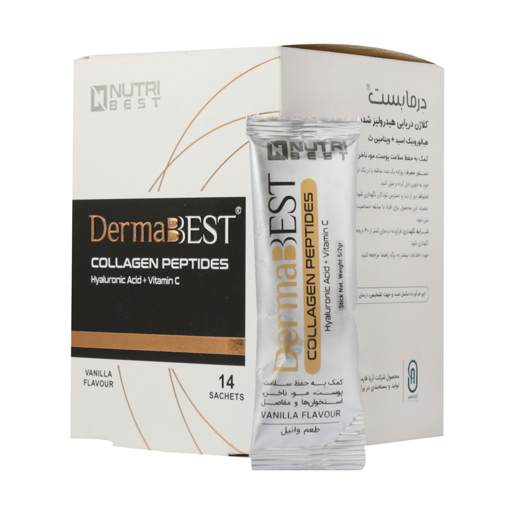 ساشه درمابست نوتری بست ساخت ایران یک مکمل منحصر به فرد غنی از کلاژن دریایی هیدرولیز شده، هیالورونیک اسید و ویتامین سی است که در از بین بردن چین و چروک، جوانسازی پوست، حفظ استحکام ناخن و حفظ سلامت استخوانها و مفاصل موثر است.