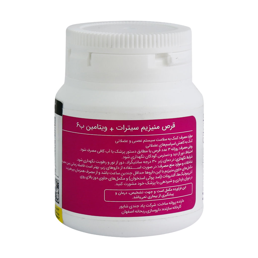 روزانه 3 عدد قرص قرص منیزیم سیترات و ویتامین B6 پاد جندی شاپور یا مطابق دستور پزشک با آب کافی مصرف شود.