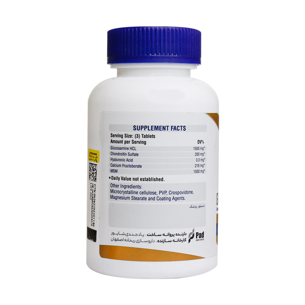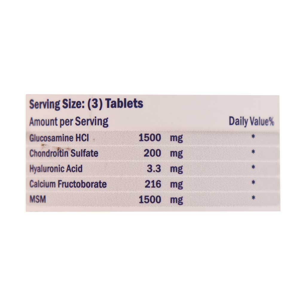 • حاوی گلوکوزامین، کنروتین سولفات، هیالورونیک اسید، کلسیم و ام اس ام