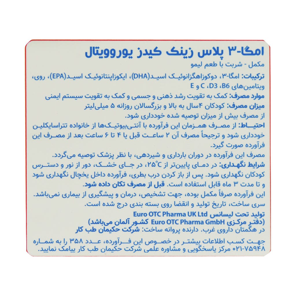ویژگی های شربت امگا 3 پلاس زینک کیدز یوروویتال