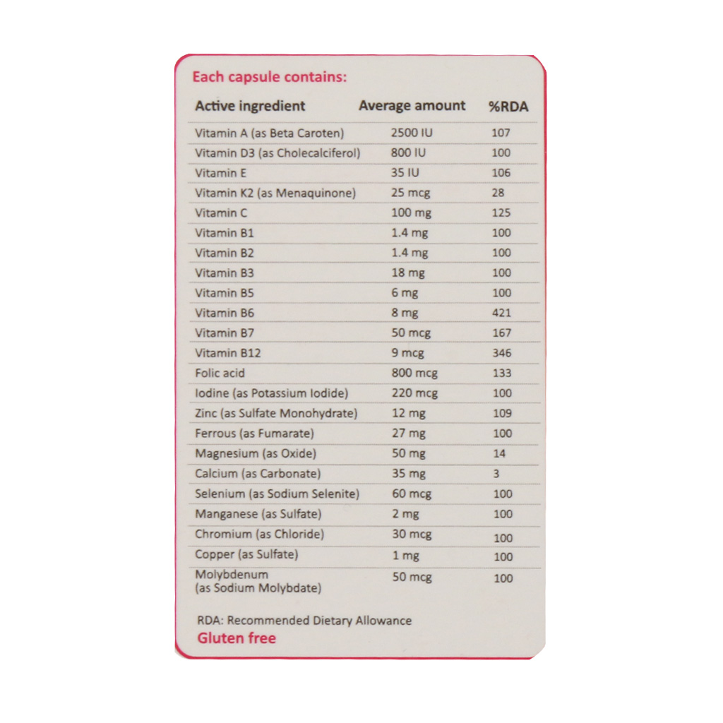 کپسول پریناتال وان ا دی حاوی مواد مغذی، ویتامینها و مواد معدنی لازم برای دوران آمادگی پیش از بارداری، در طول بارداری و در زمان شیردهی است.