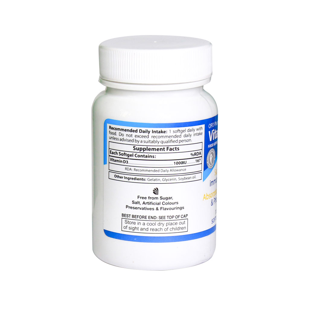 سافت ژل ویتامین D3 1000 واحد او پی دی فارما محصولی مناسب و منحصر به فرد جهت تامین ویتامین د مورد نیاز بدن است. همچنین با مصرف این محصول از بیماری‌های ناشی از کمبود ویتامین د در امان هستید. قرص ویتامین D او پی دی فارما با فراهم آوردن همزمان ترکیبی از ویتامین دی و کلسیم در جهت کمک به جلوگیری و درمان پوکی استخوان نقش بسزایی ایفا می‌کند.