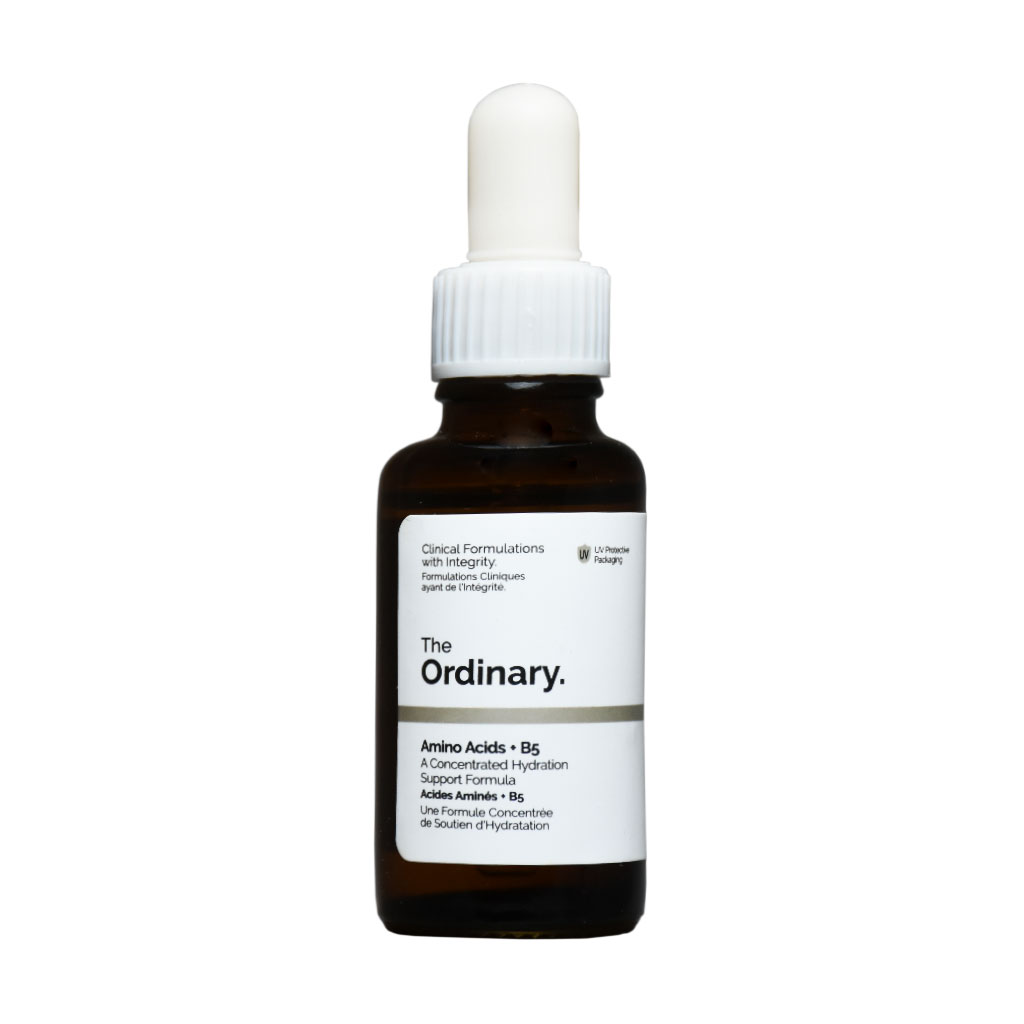در ترکیبات سرم آمینو اسید و B5 د اوردینری از آمینو اسیدها (شامل لیزین، آرژنین، ترئونین، پرولین، آلانین و سرین) استفاده شده است. آمینو اسیدها در ساختار پروتئینهای پوستی نقش دارند و از طریق تغذیه و تقویت سلولهای پوست به بهبود سلامت پوست کمک میکنند. همچنین ویتامین ب5 موجود در آن یک ویتامین مرطوب کننده است که علاوه بر حفظ رطوبت پوست به تقویت عوامل طبیعی نرم کننده و ضد التهابی پوست کمک میکند. در نتیجه میتوان گفت بعد از استفاده از سرم پوست ، پوستی شاداب و مرطوب را برای شما به ارمغان میآورد.