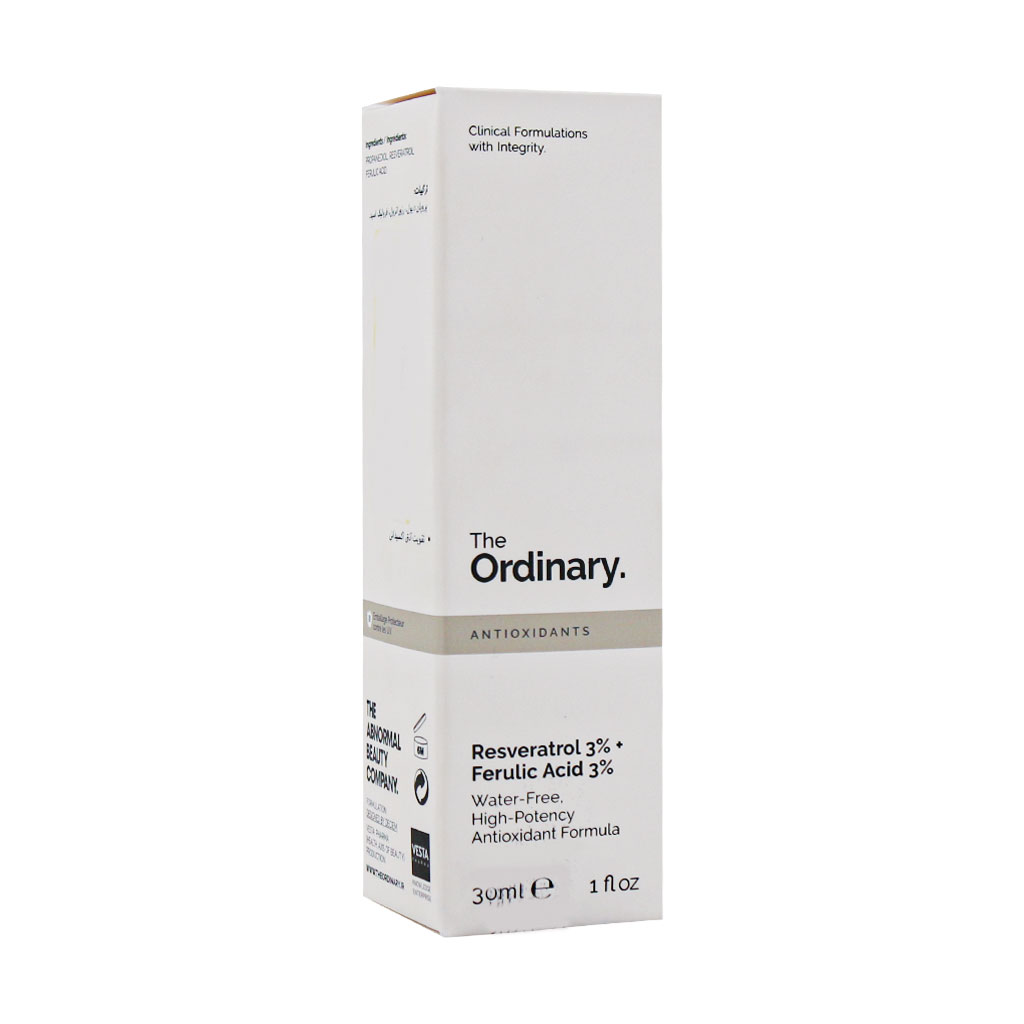 در فرمولاسیون سنتی معمولا از رسوراترول به میزان 1 درصد و اسید فرولیک به میزان 5 درصد استفاده می‌شود. اما در فرمولاسیون این سرم آنتی اکسیدان و ضد پیری اوردینری به میزان 3 درصد از هر کدام وجود دارد و این بدان معنی است که با سرم رزوراترول 3% و فرولیک اسید 3% اوردینری می‌توانید از حداکثر مزایای این دو ماده طبیعی بهره ببرید.