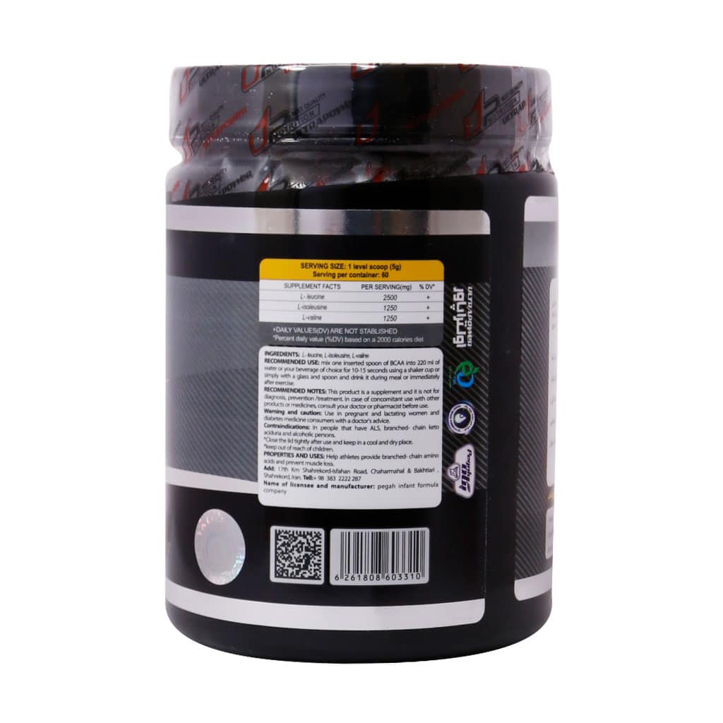 پودر بی سی ای ای اولترا پاور پگاه مکملی قدرتمند برای جلوگیری از تخریب عضلات و افزایش کیفیت عضله سازی است. این محصول سه اسید آمینه والین، لوسین و ایزولوسین دارد که برای عضله سازی بسیار حیاتی هستند.