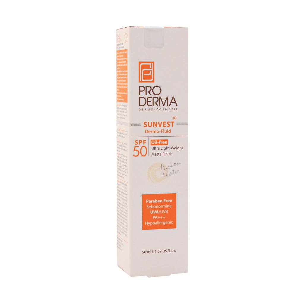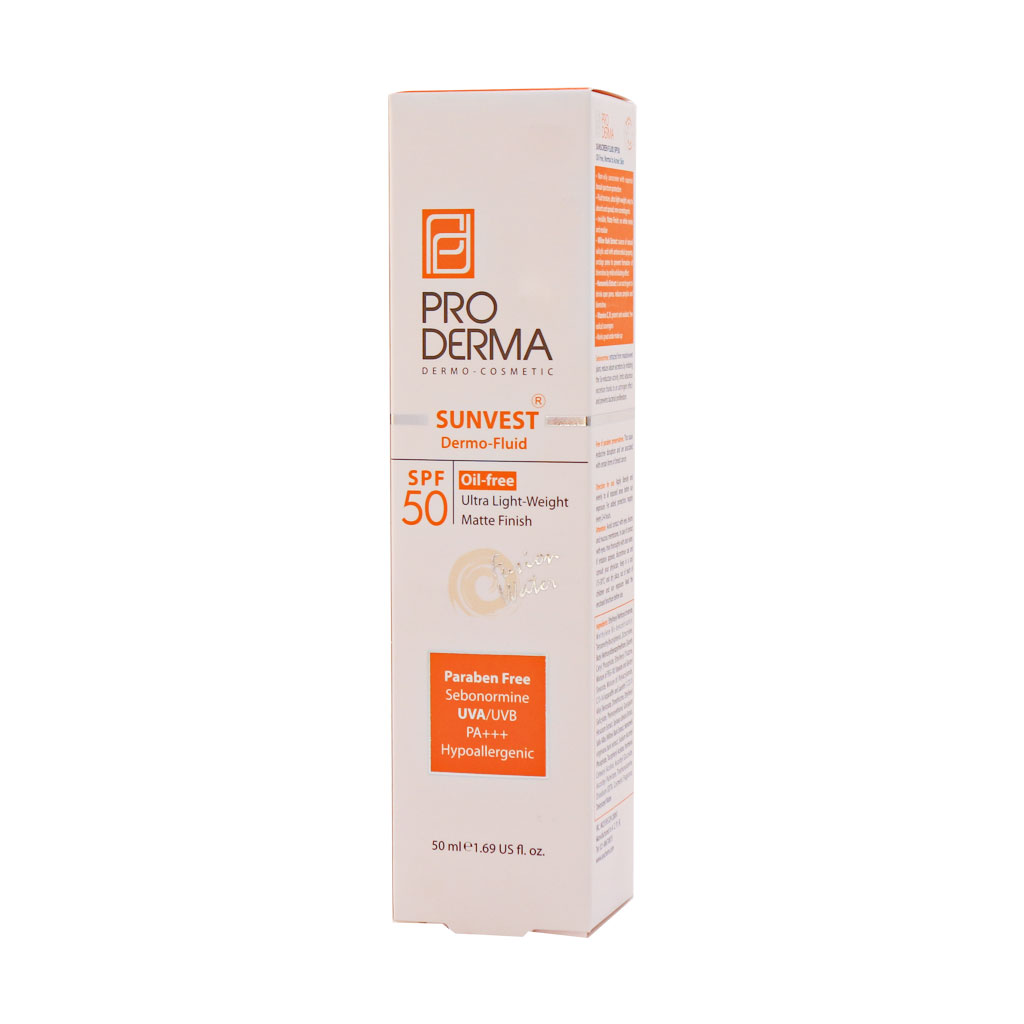 فلوئید ضد آفتاب فاقد چربی SPF50 پرودرما مناسب پوست های چرب و جوش دار 50 میلی لیتر
